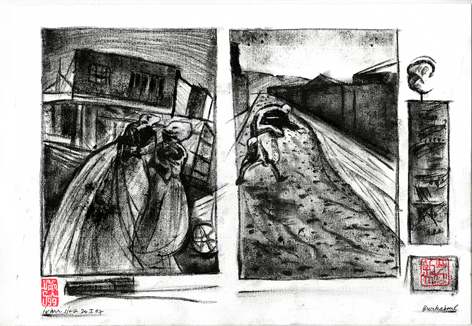 (Encre au rouleau, à partir des pages 42-43 du