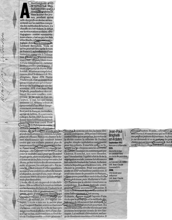 (d'après l'article de Judith Perrignon « Ça vous apprendra », paru dans Libération du 30 octobre 2006)